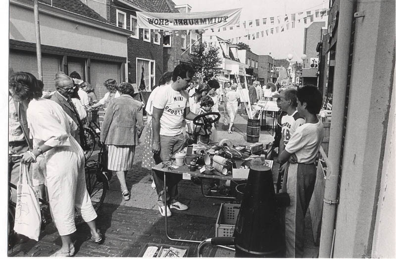 Braderie Baggerfestival in Kerkbuurt, kraam Historische Vereniging Sliedrecht