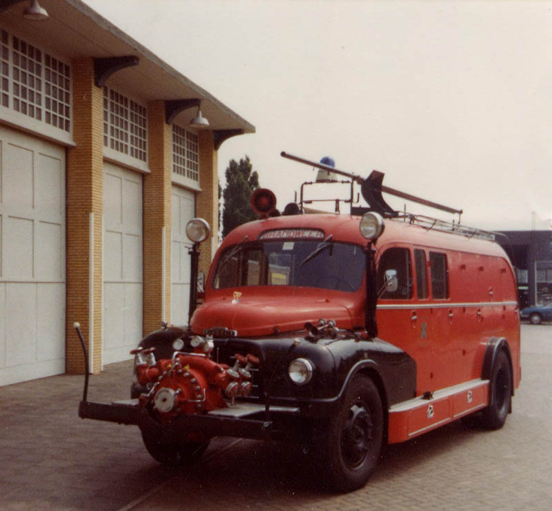 Oude brandweerauto bij de brandweerkazerne in de Middeldiepstraat