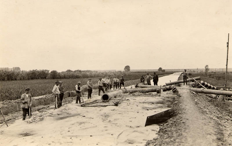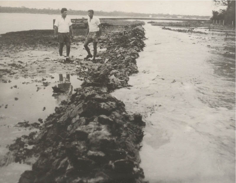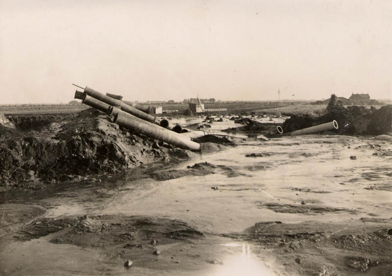 Werkzaamheden buitenaf na dijkdoorbraak.