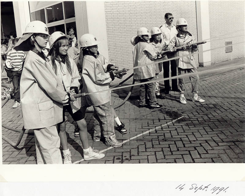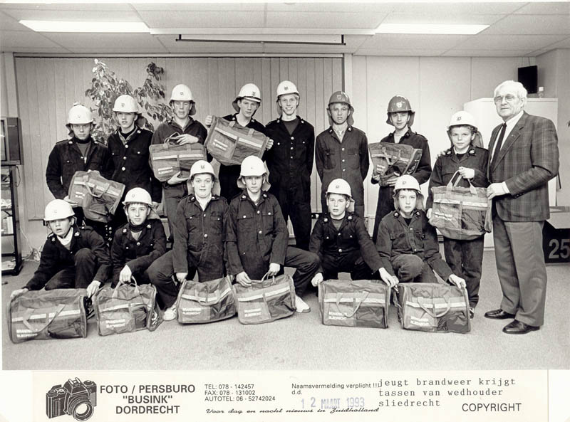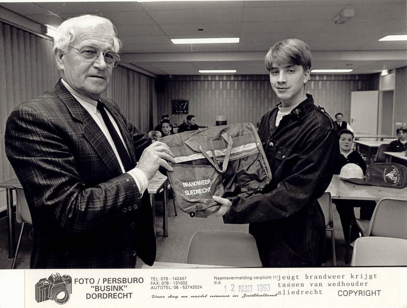 Jeugdbrandweer ktijgt tassen van wethouder Bas Korporaal.