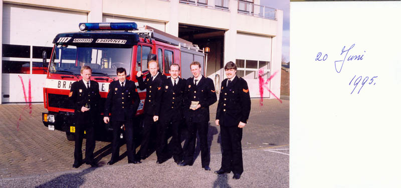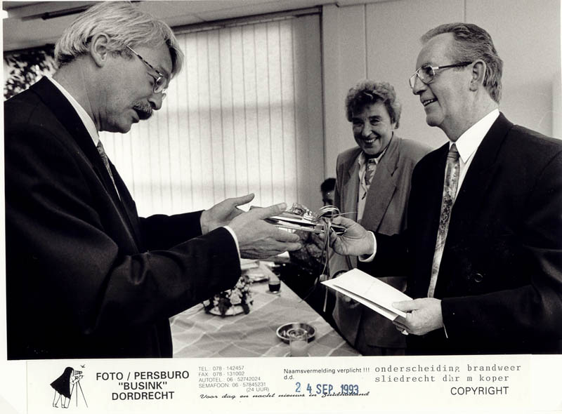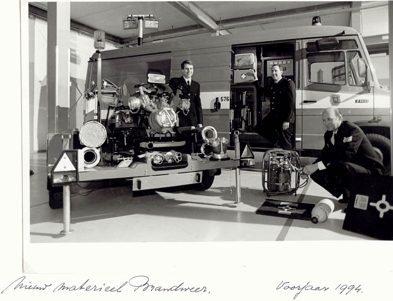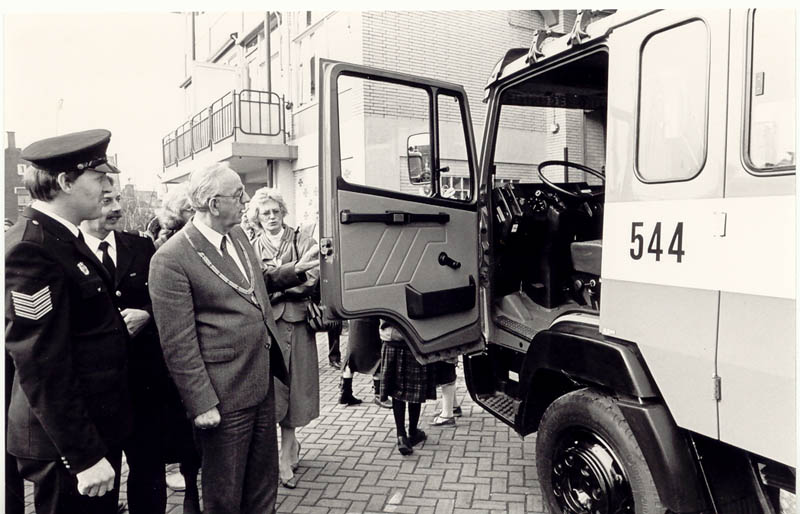 Inspectie nieuwe brandweerauto door burgemeester Hendriks.