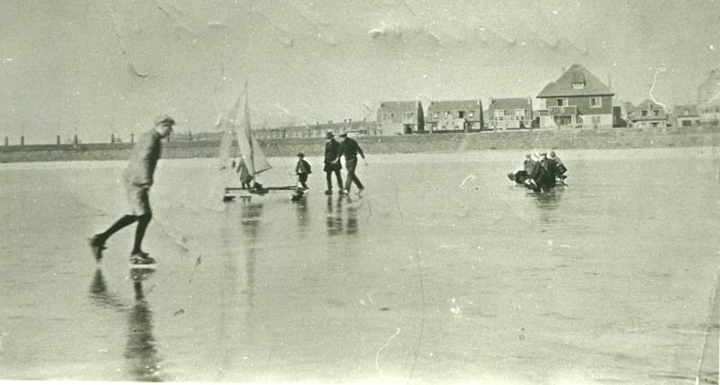 IJszeilen en schaatsen op een dichtgevroren Merwede
