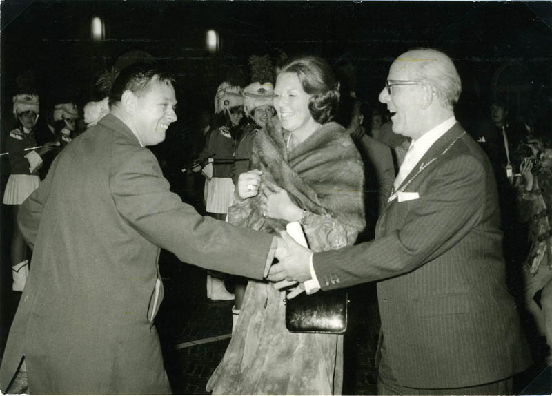 'Broertje'Reijer Prins begroet Prinses Beatrix en burgemeester Van Hofwegen.