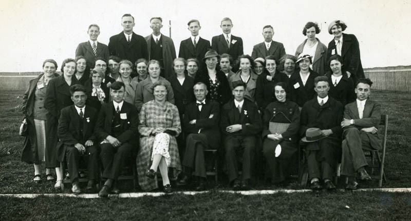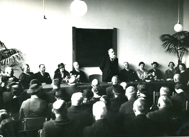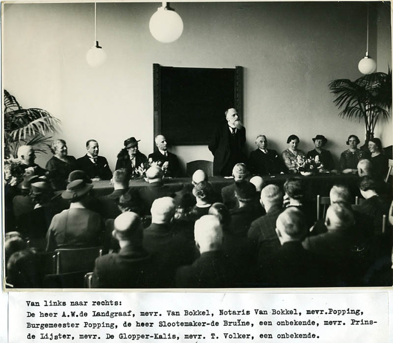 Gezelschap bijeen met burgemeester Popping en notaris Van Bockel.