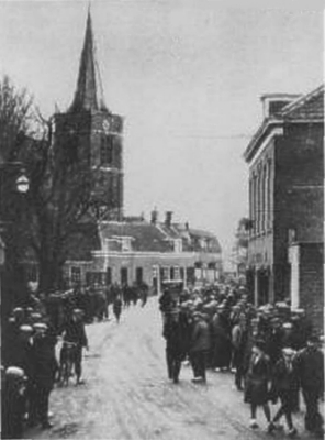 Arbeidfsbureau tegenover de Kerk. Stempelaars in crisistijd.