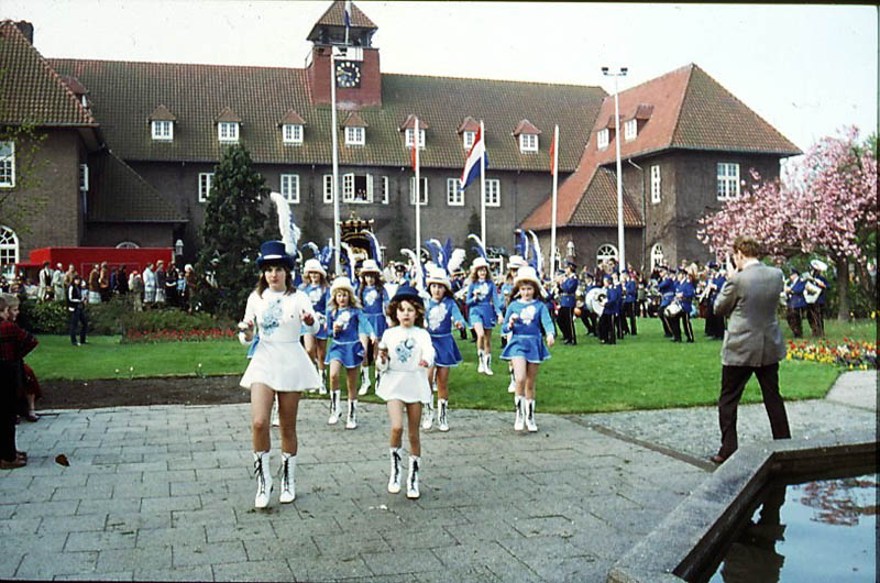 Majorettes voor het gemeentehuis bij het feest met ruitervereniging HAGOS