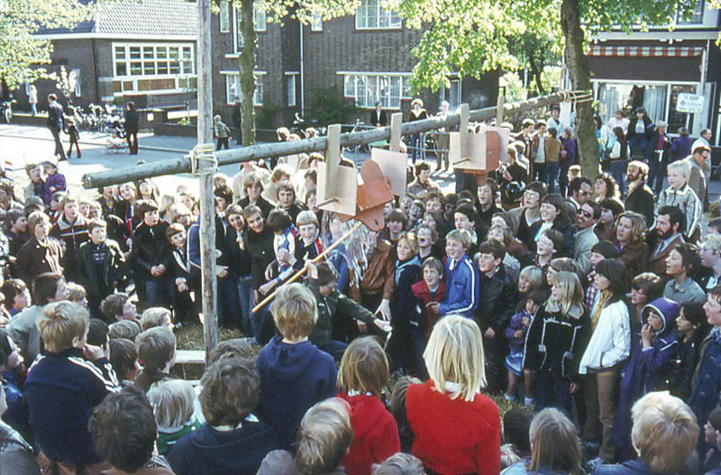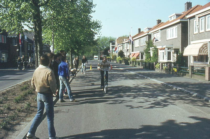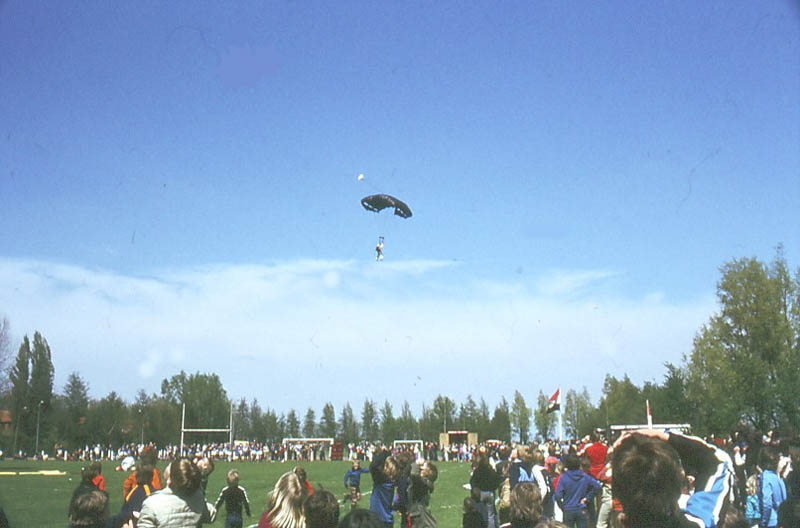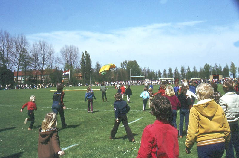 Oranjefeest aan de Thorbeckelaan met parachutisten