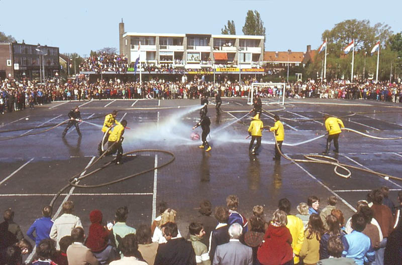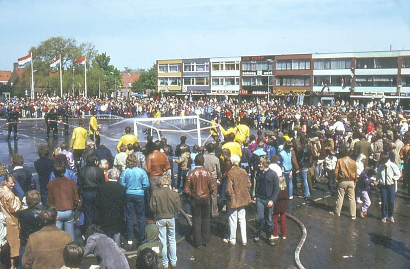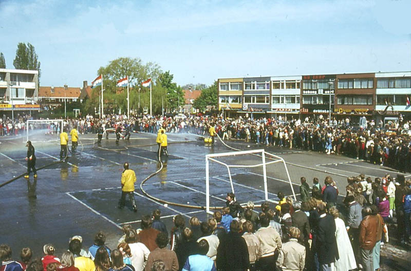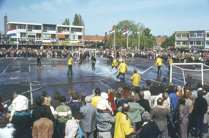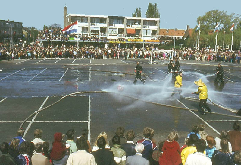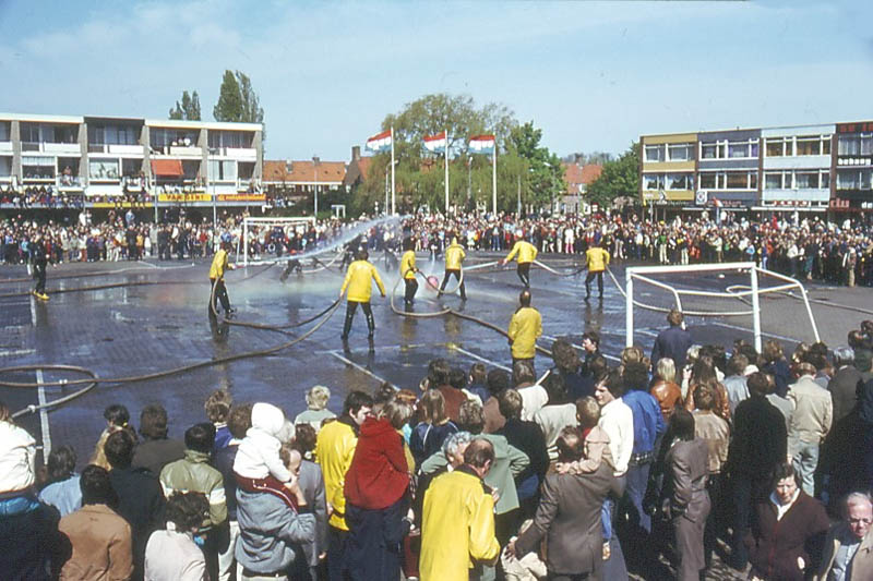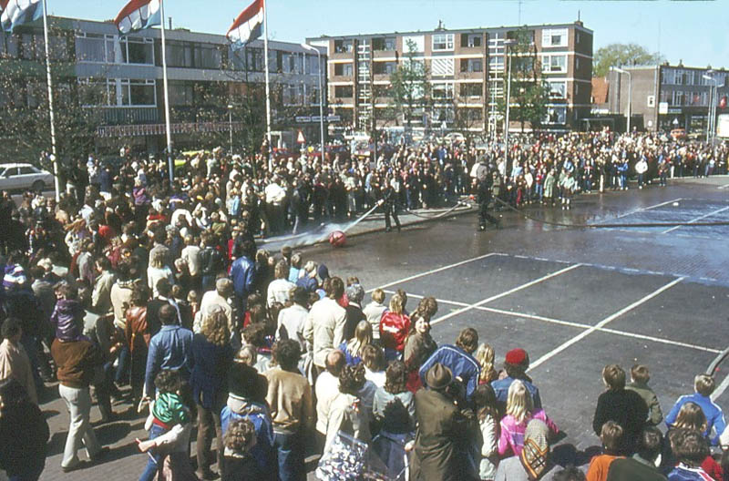 Oranjefeest op het Burg. Winklerplein met de brandweer