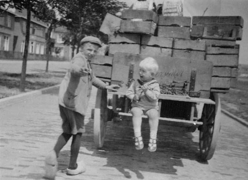 Groenteboer Korevaar van links naar rechts:Tinus-Jannie en Pa Dirk Korevaar