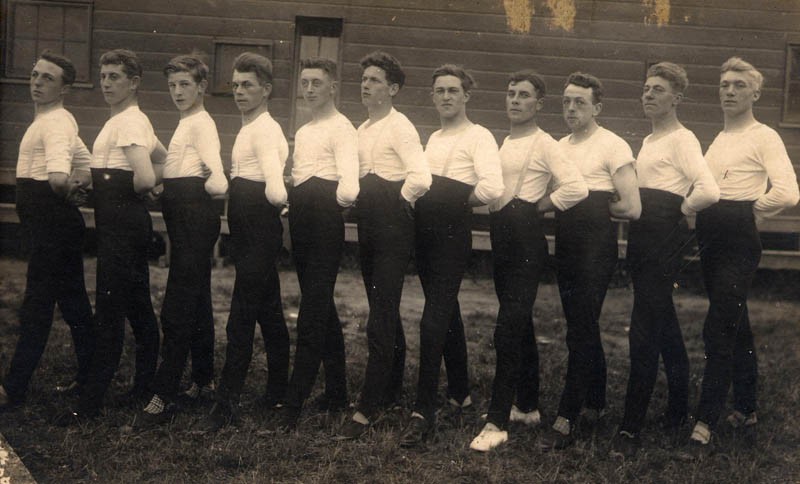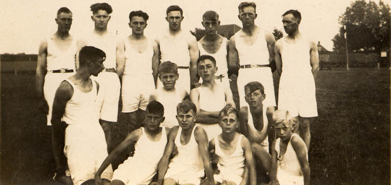 Gymnastiek met Sport Staalt Spieren (SSS). Precies in het midden achterste rij: Geurt Visscher (1907-1969).