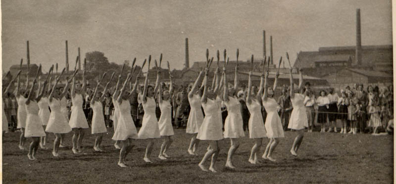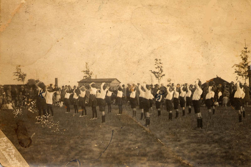 Gymnastiek met Sport Staalt Spieren (SSS). In het midden: Arie Visscher (1922).