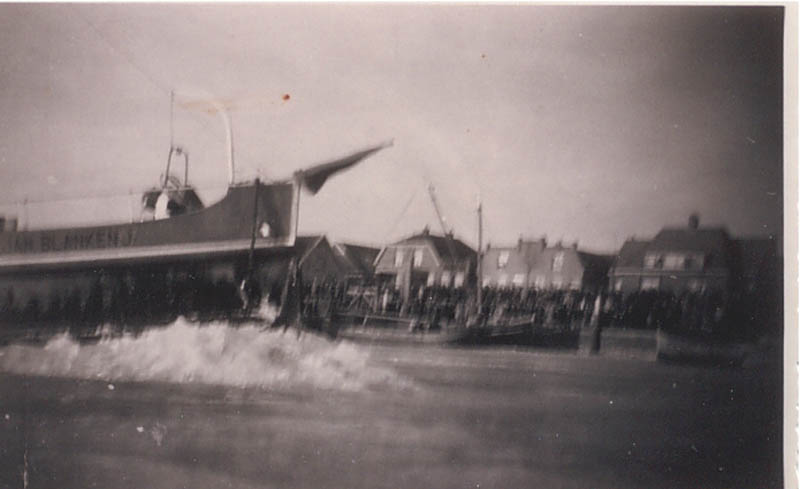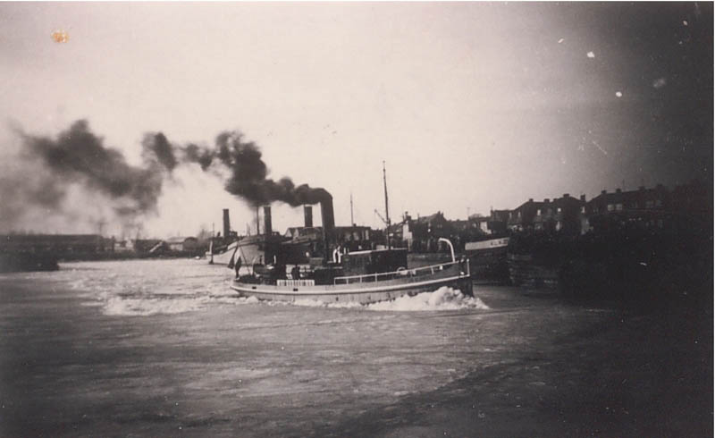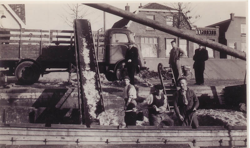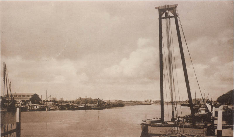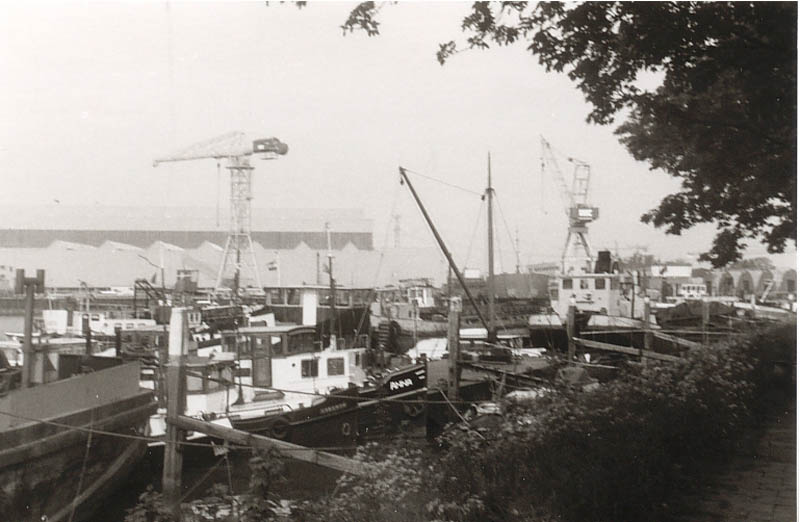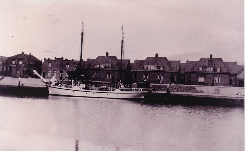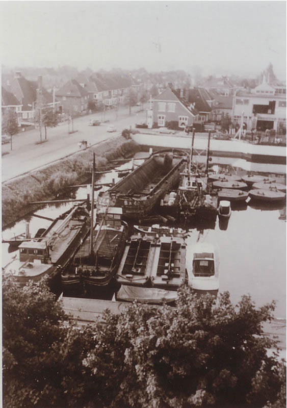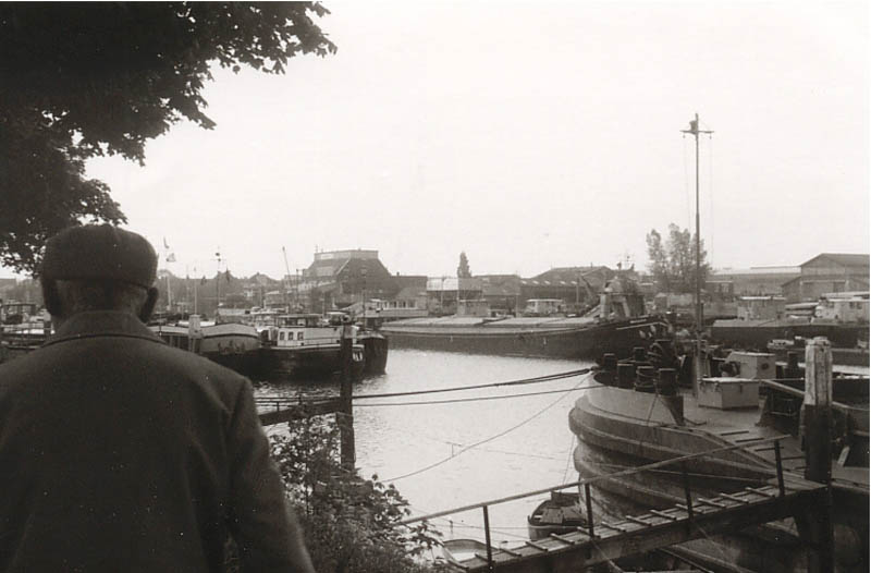 Dit is het motorschip 'Risico'. Het schip was van De Ruiter {1938 tm 1963} Daarna heeft M.B. Kornet er mee gevaren. Het schip ligt op de foto als tweede aan de loswal. De roeiboot aan de kont en de uitlaat BB naast de hut.