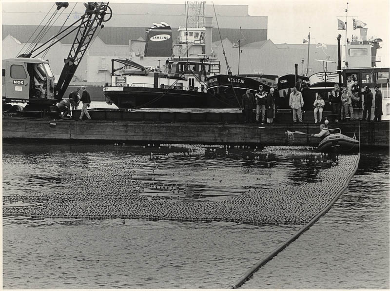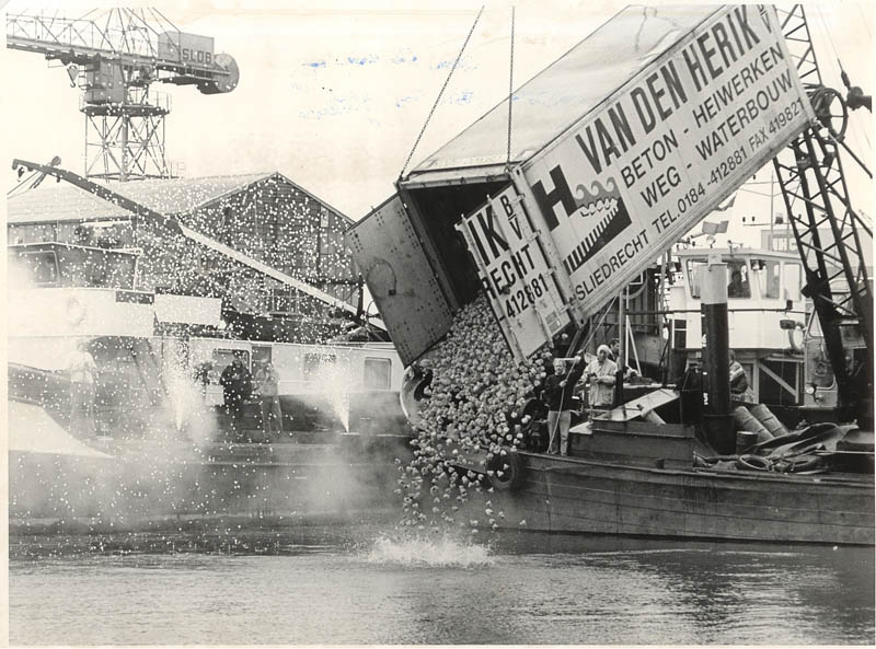 Lossen van 'eendjes' in de Sliedrechtse haven.