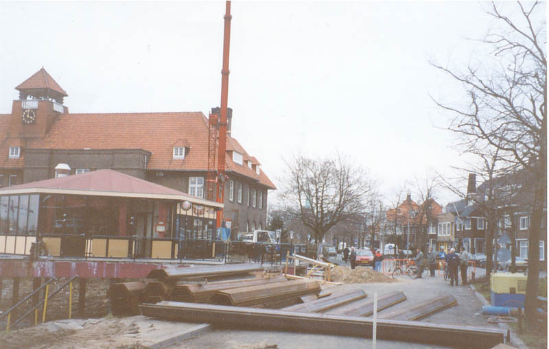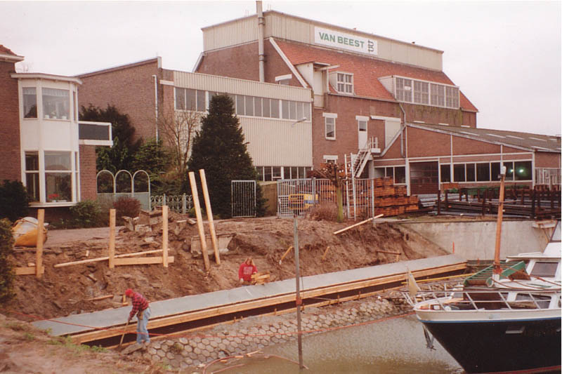 Werk aan de havenkade in de Havenstraat i.v.m. dijkverzwaring