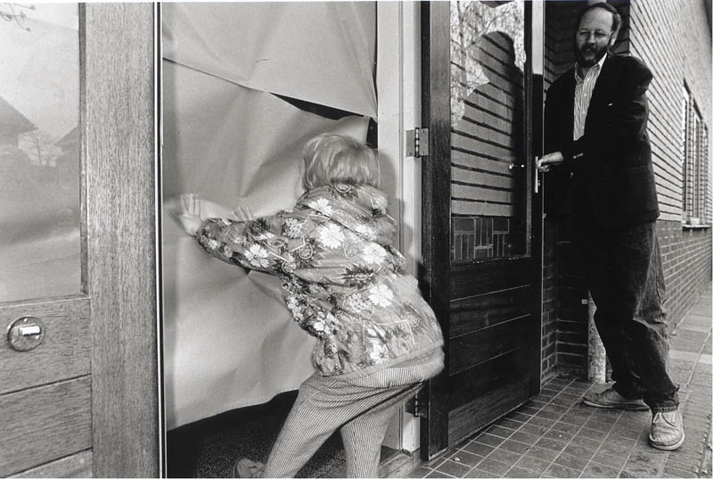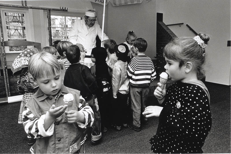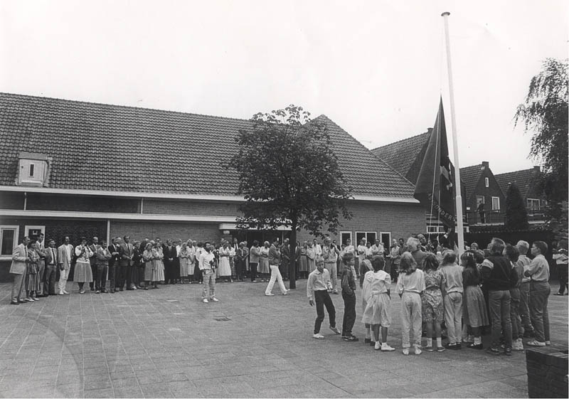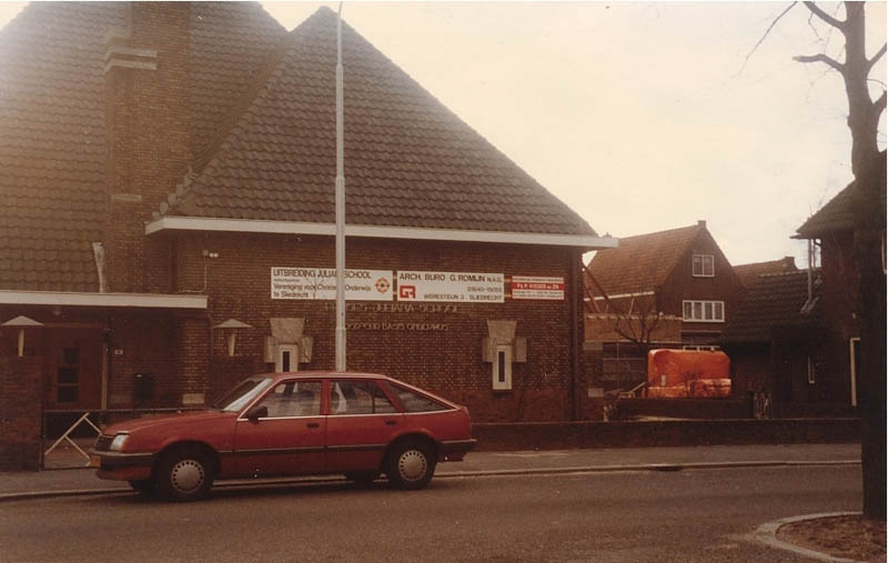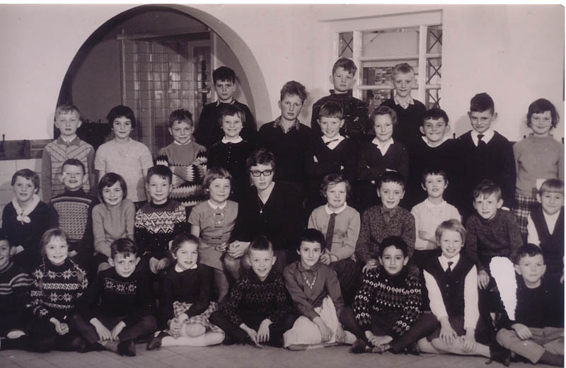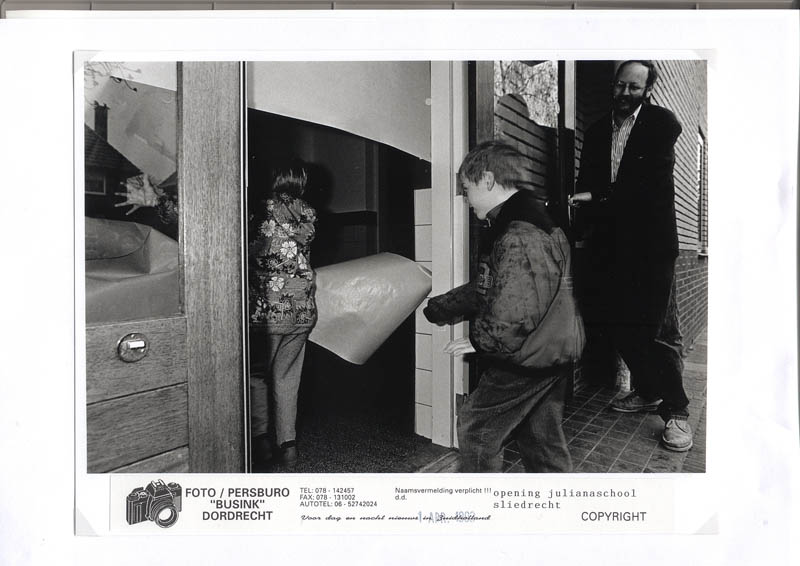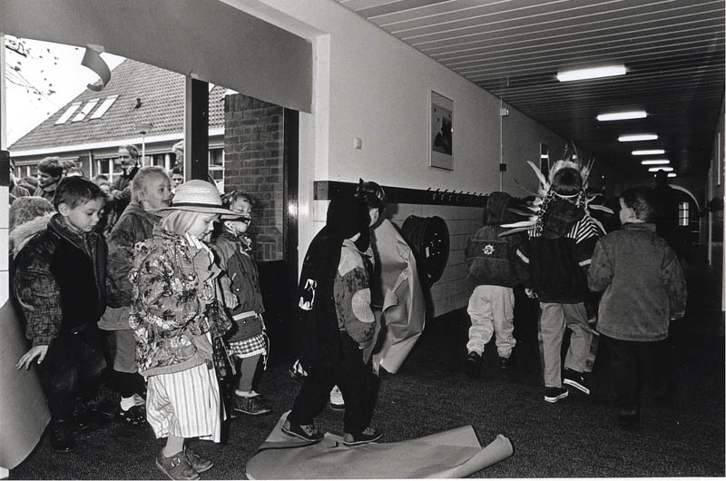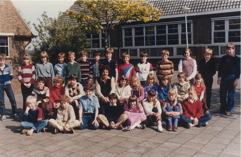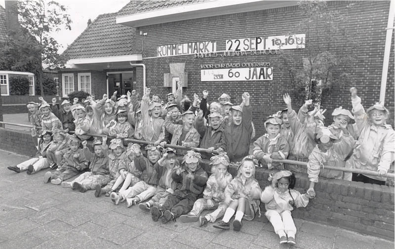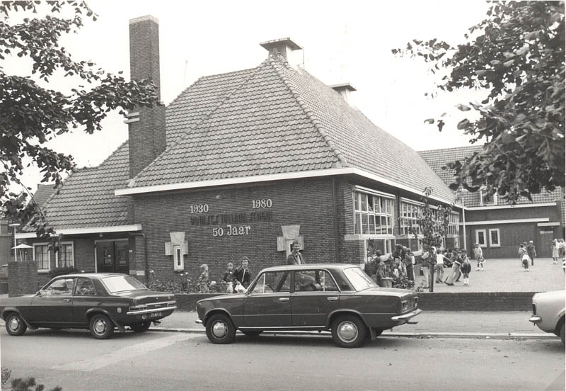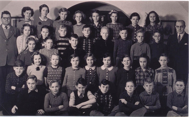 De juffrouw links in het gebloemde jurkje met witte bloes is Janna Bastiaantje (Jenny) van Ballegooijen (1912-1985), dochter van Aalbert van Ballegooijen, voorzitter van het schoolbestuur. Kleuterschool Merwestraat, circa 1936.