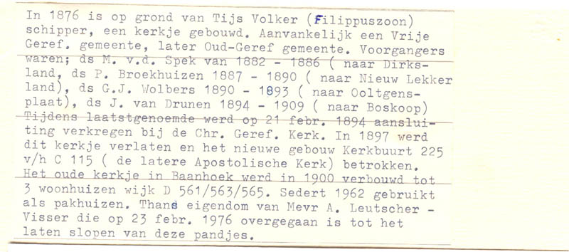 Kerkje in wijk D - Baanhoek. Lees de aparte tekst bij de foto