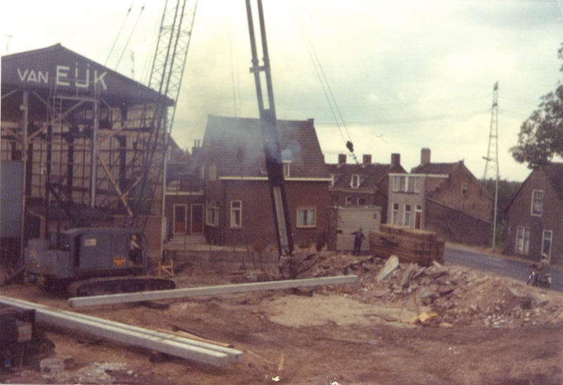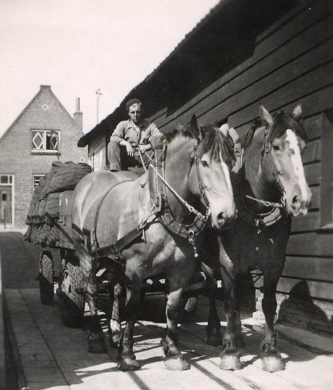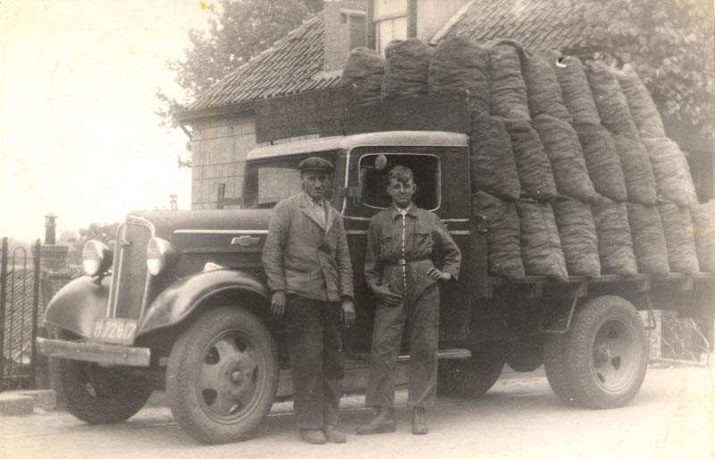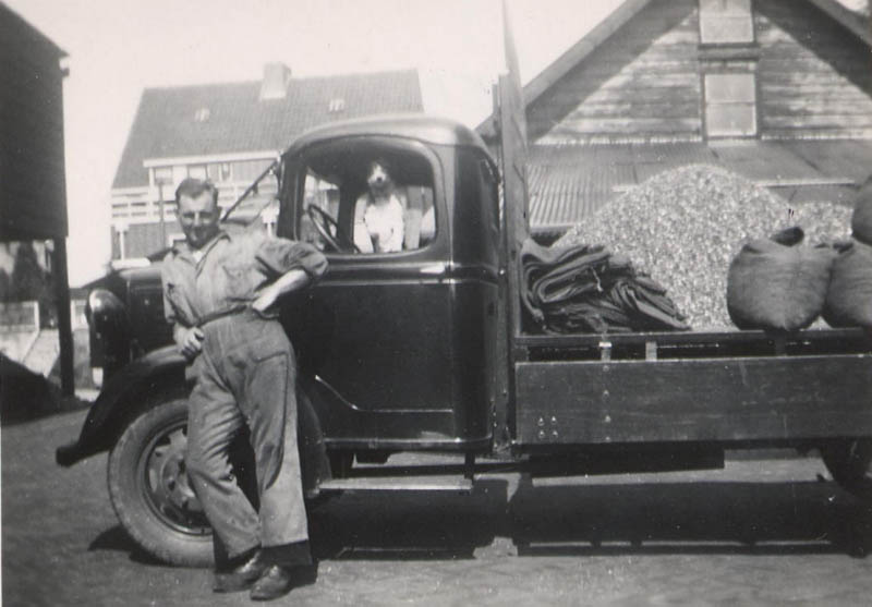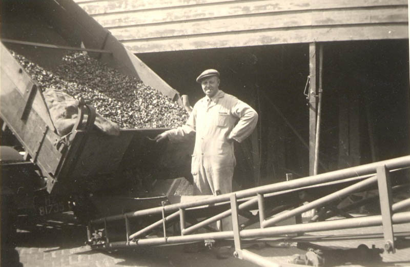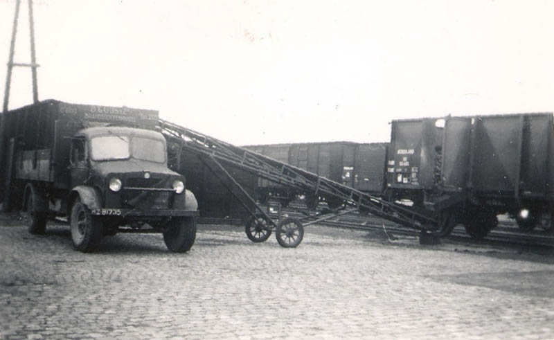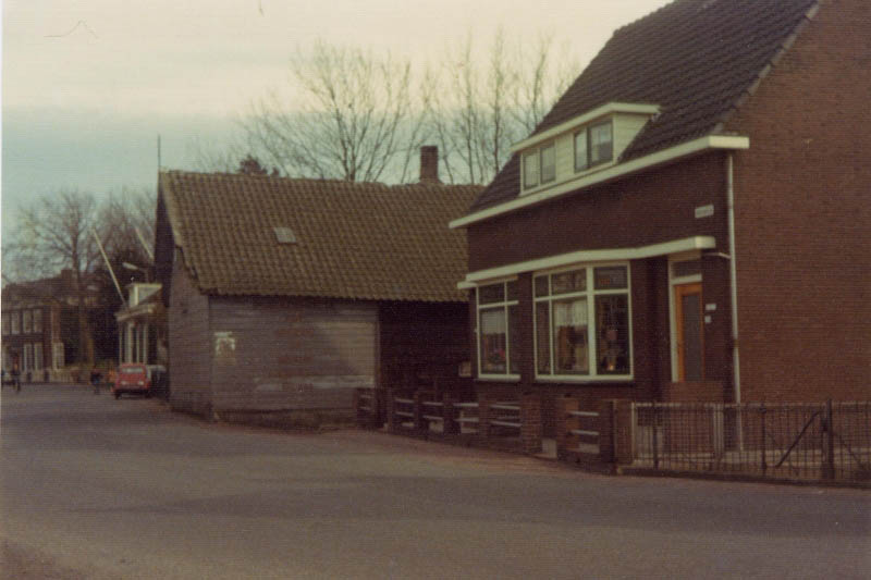 De schuur op de achtergrond is een van de schuren die daar stonden van Kolenhandel Bouwman, gebouwd naar een ontwerp van Marinus "Riens" de Bruin (18-02-1912 - 17-07-1983). De verlading verliep via een luik in het dak.