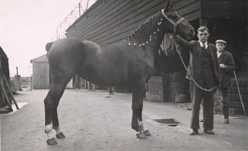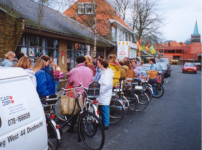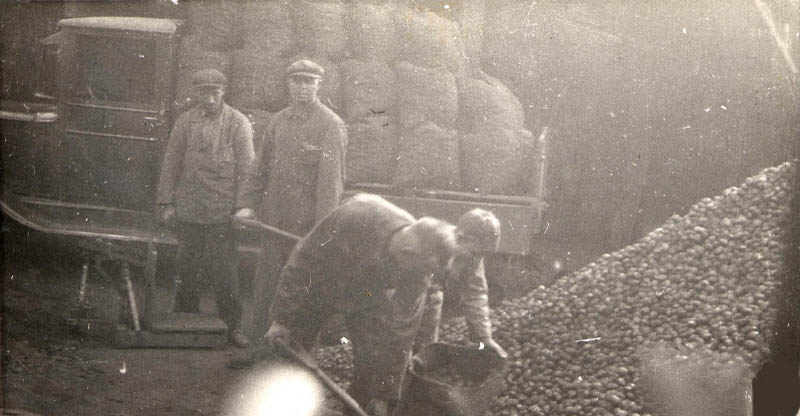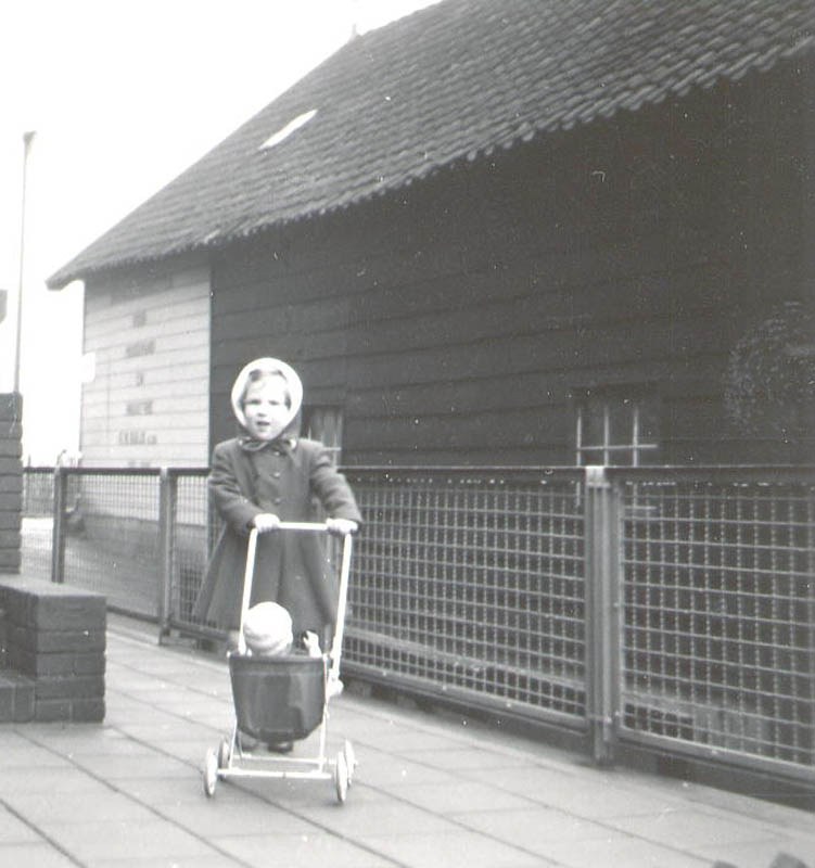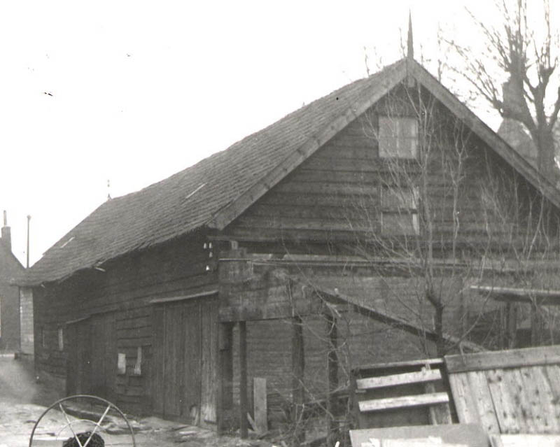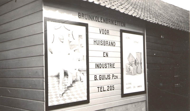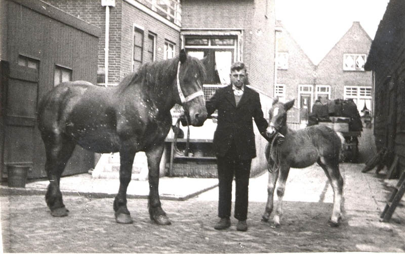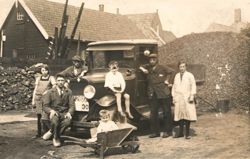 De schuur op de achtergrond is een van de schuren die daar stonden van Kolenhandel Bouwman, gebouwd naar een ontwerp van Marinus "Riens" de Bruin (18-02-1912 - 17-07-1983). De verlading verliep via een luik in het dak.