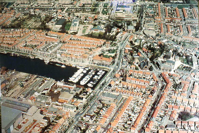 Luchtfoto circa 1980 van het havengebied.