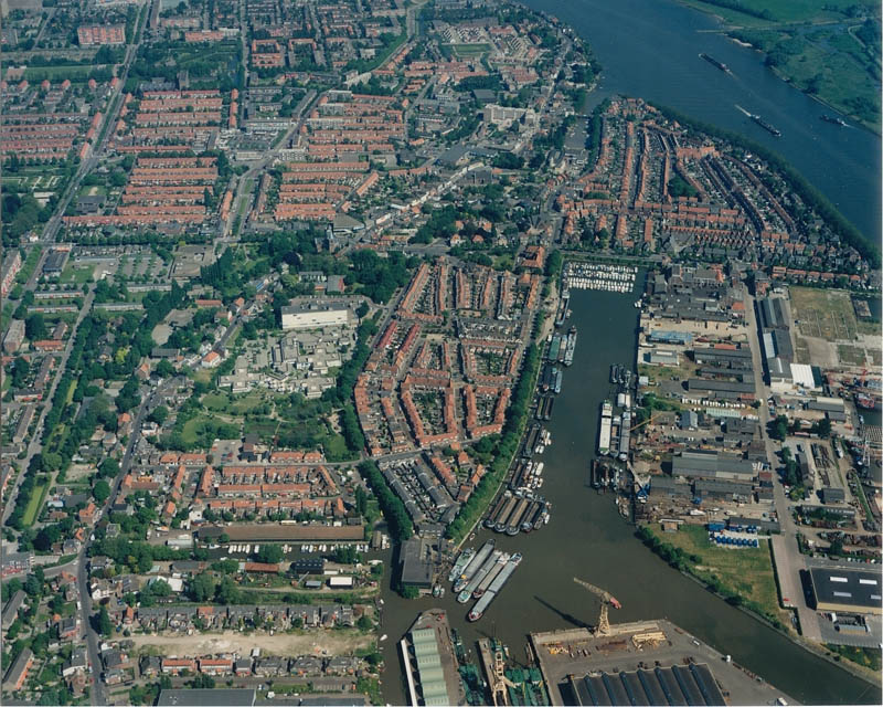 Luchtfoto tussen haven en Merwede