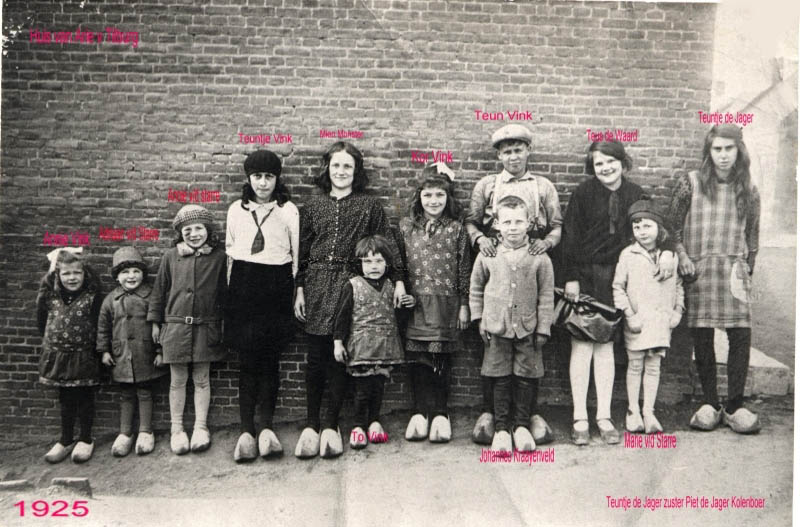 Groepsfoto gemaakt ter hoogte van het terrein van Vink motoren in wijk A.