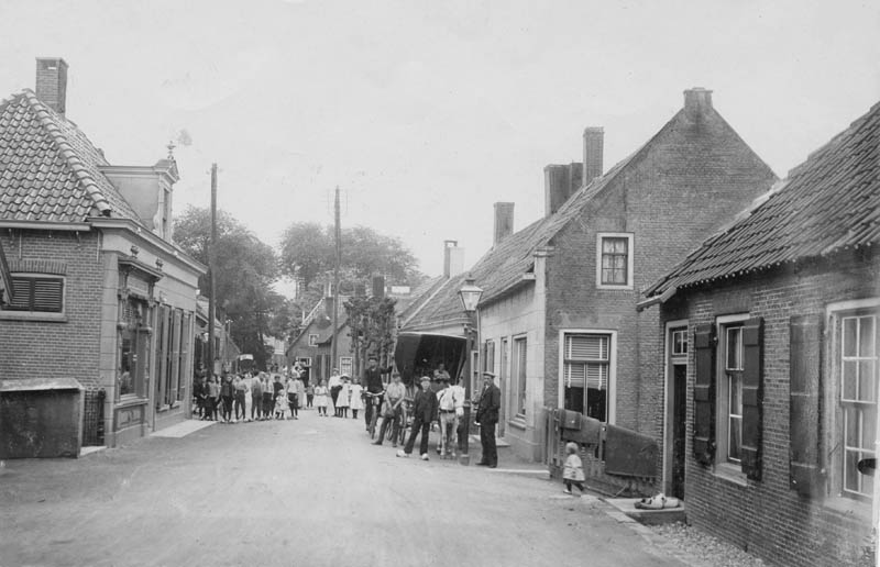 Omgeving latere stoep van Jan Broeren. Pand links slager Veldhuizen
