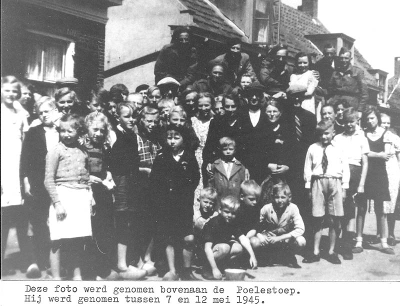 Groepsfoto gemaakt bovenaan de Poelenstoep in 1945