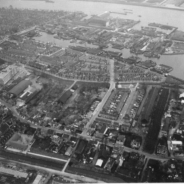 Luchtfoto Sliedrecht tussen haven, dijk en Dijkstraat