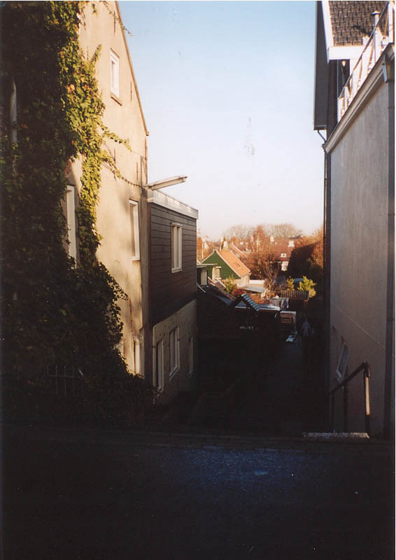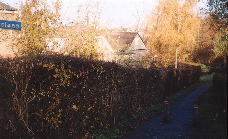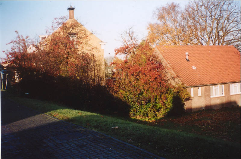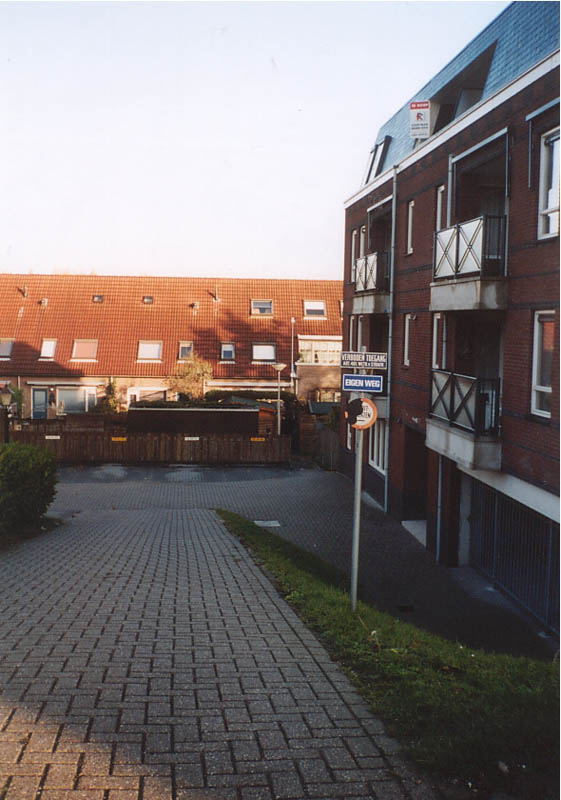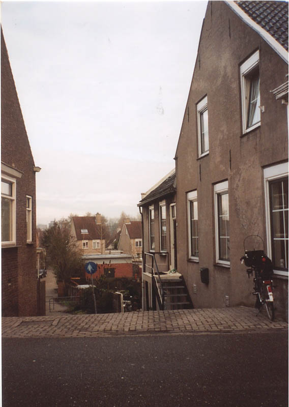 Stoep richting woonwijk Middenveer. In de woning rechts was vroeger een sigarenzaak.