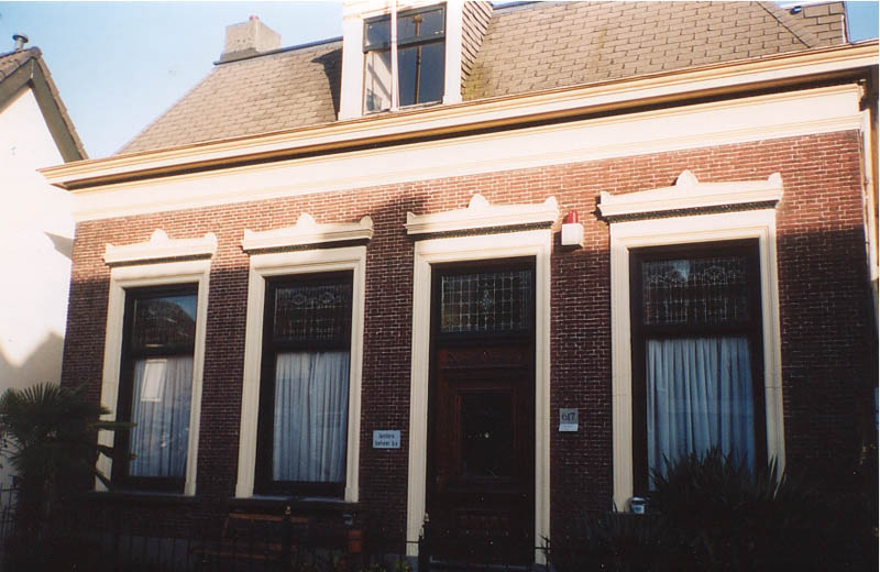 Vroegere sociëteit, omgebouwd tot appartementengebouw . De stoep leidde vroeger naar de voormalige Wilhelminaschool