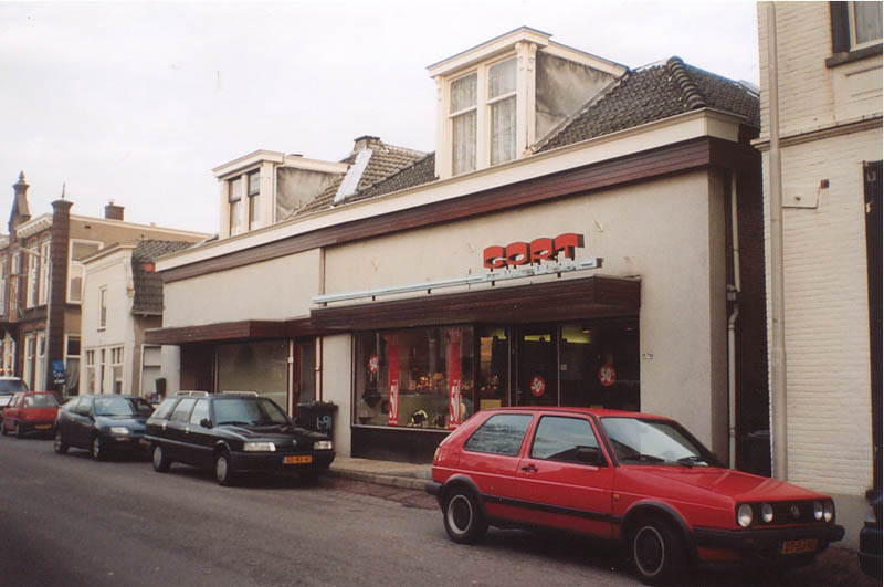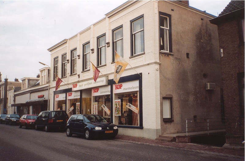 Kop textiel, later Kringloopwinkel. Op achtergrond juwelier Gort.