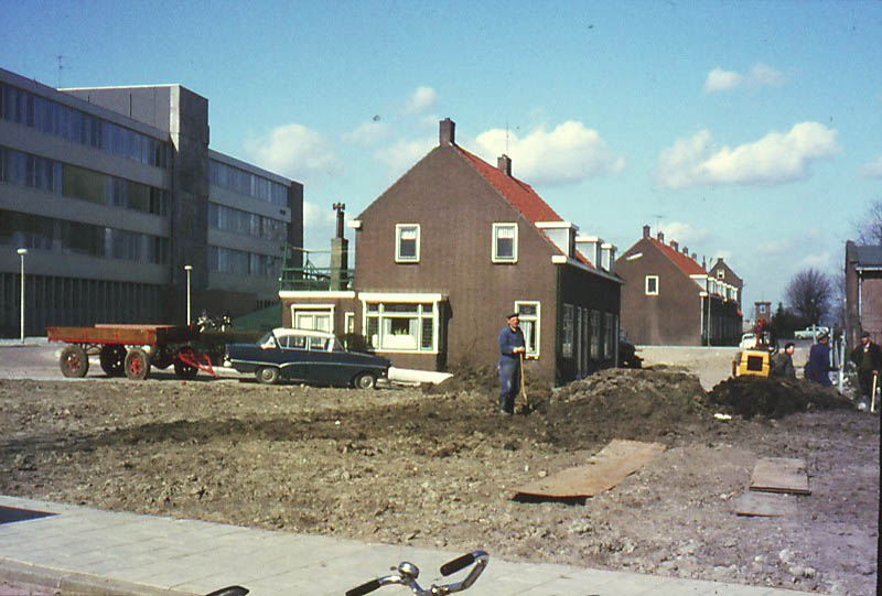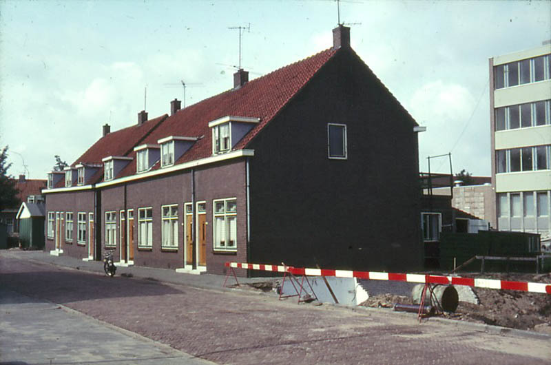 Prins Bernhardstraat. Een gedeelte staat er nog, een ander deel is reeds afgebroken i.v.m. de bouw van het nieuwe ziekenhuis.