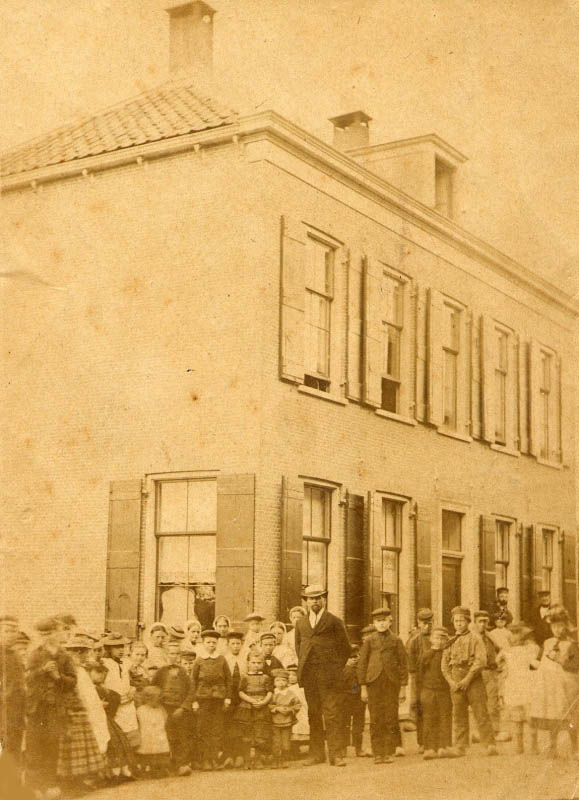 Rechts het schoolhuis bij het Veereschool. Jan den Heijer was hoofd der school