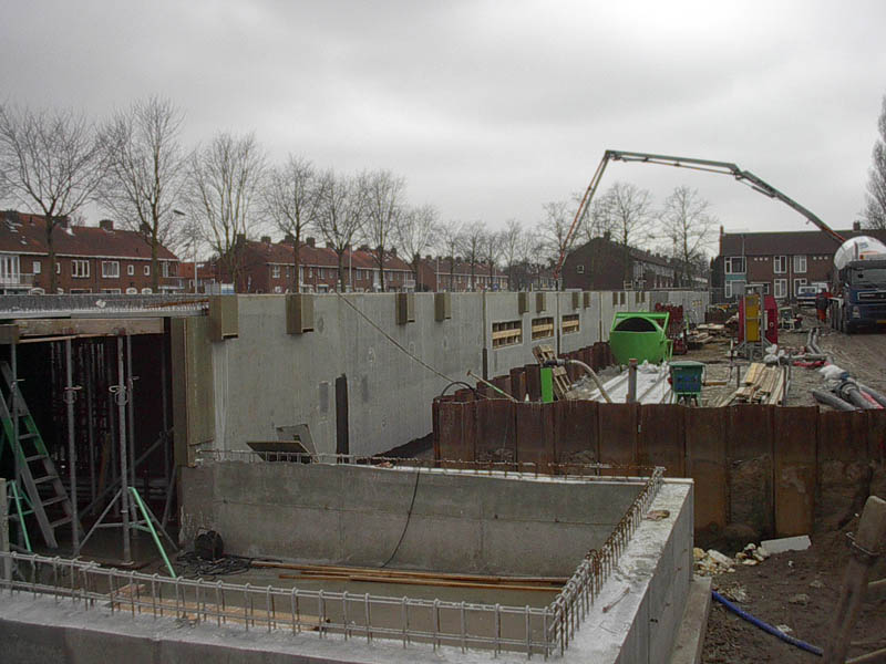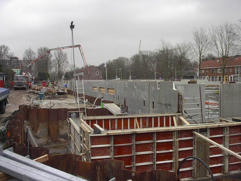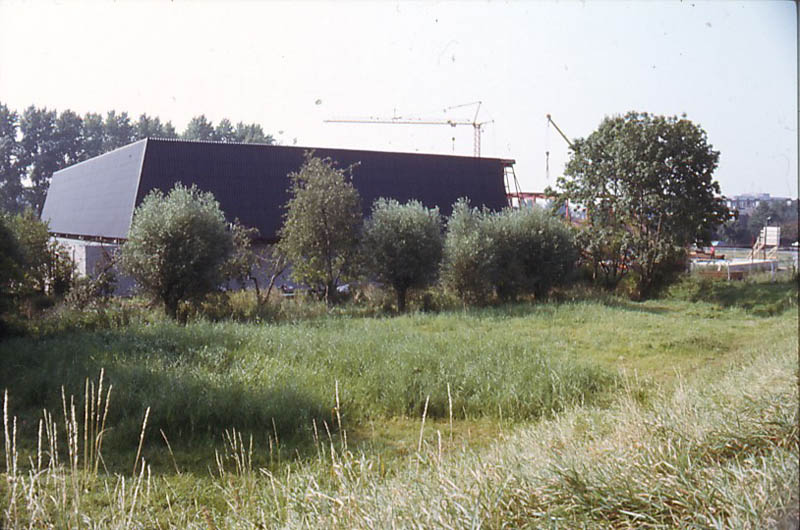 Bouw van sporthal De Stoep aan de P.C.Hooftlaan in 1980