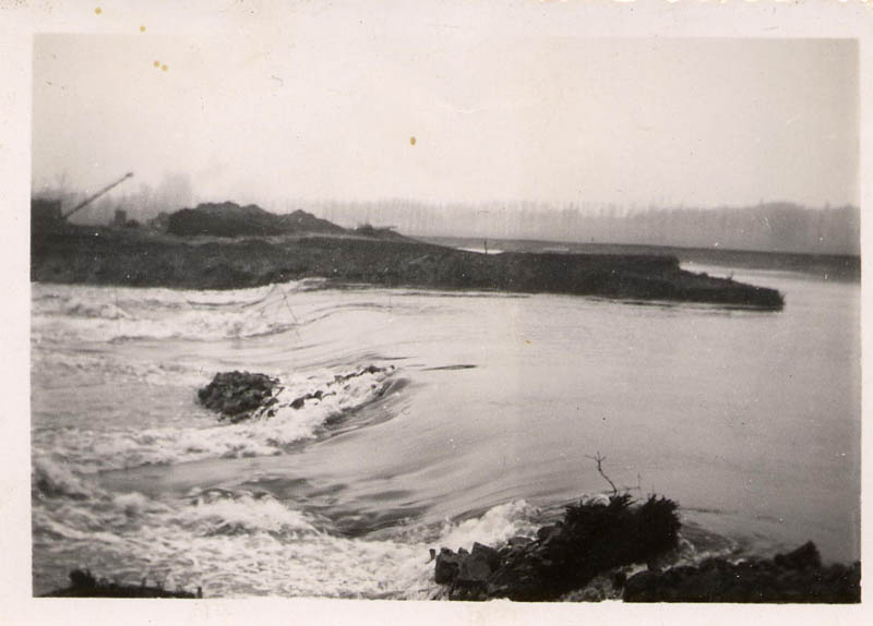 Dichten van het gat in de dijk op de Kaai na watersnoodramp 1953