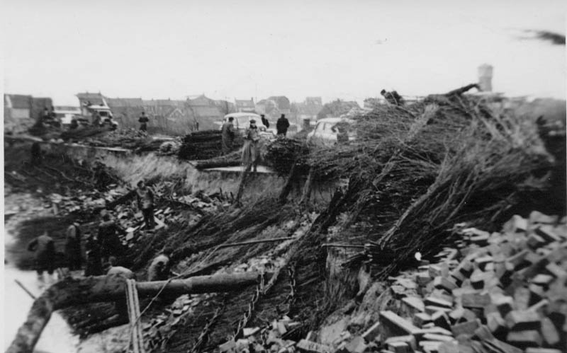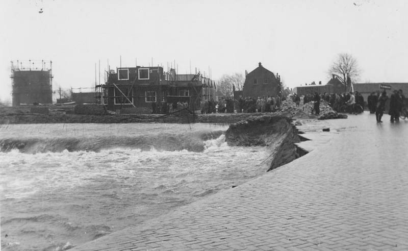 De dijkdoorbraak bij de Kaai in wijk A in 1953.
