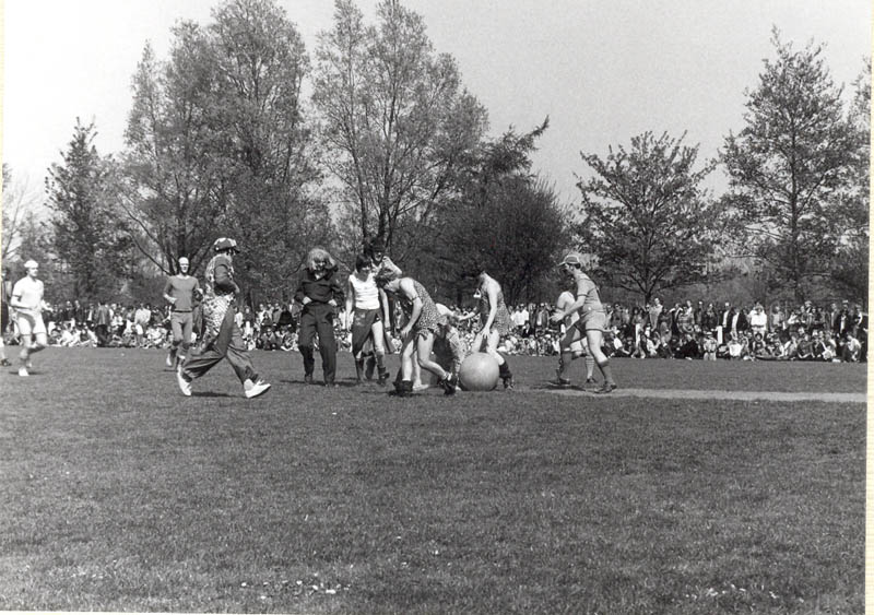 S.S.S. gymnastiekuitvoering op het voetbalveld aan de Parallelweg
