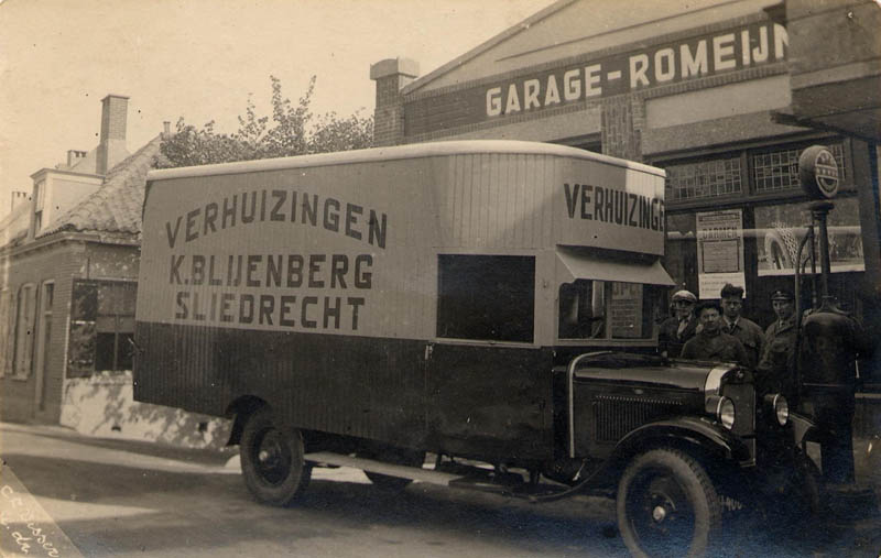 Garage Romeijn met vrachtwagen verhuisbedrijf Blijenberg