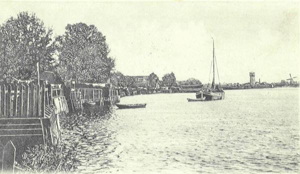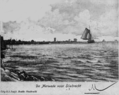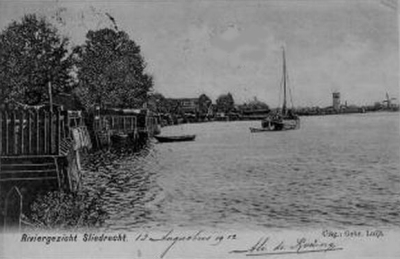 De rivier voor Sliedrecht met op achtergrond de watertoren