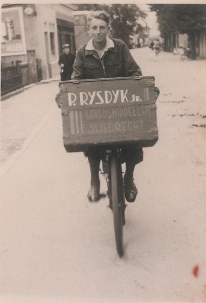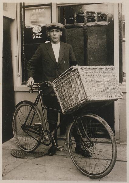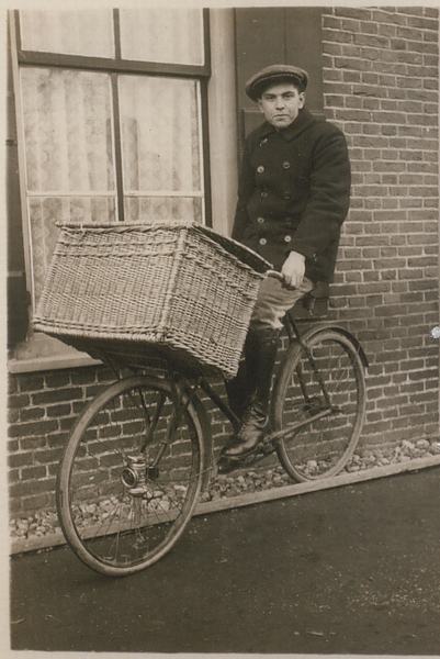 Kruidenier Rijsdijk met transport fiets. Rijsdijk had een kruidenierswinkel bij de Rijsdijkstoep.