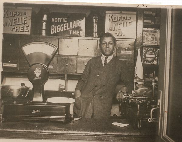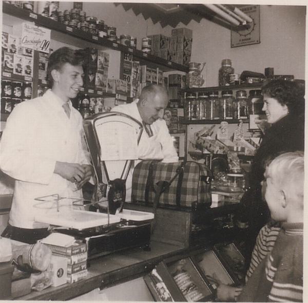 Kruidenierswinkel Piet Rijsdijk met vader Piet en zoon Gert.
