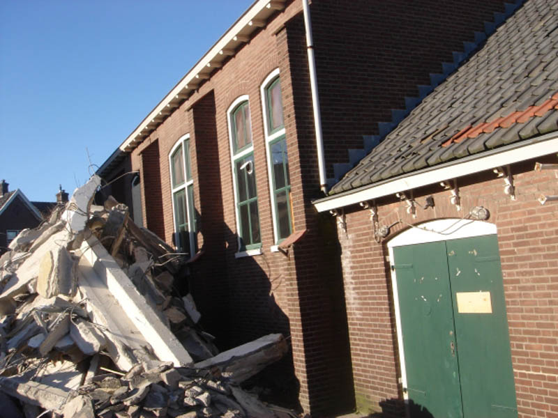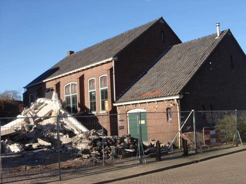 Gymnastiekzaal De Gantel, later verenigingsgebouw muziekvereniging De Harmonie in de laatste fase voor de sloop.