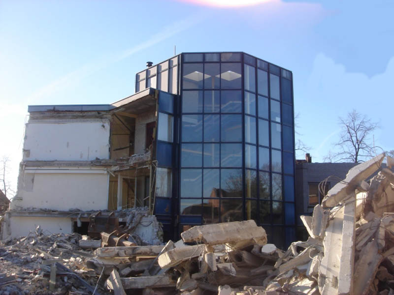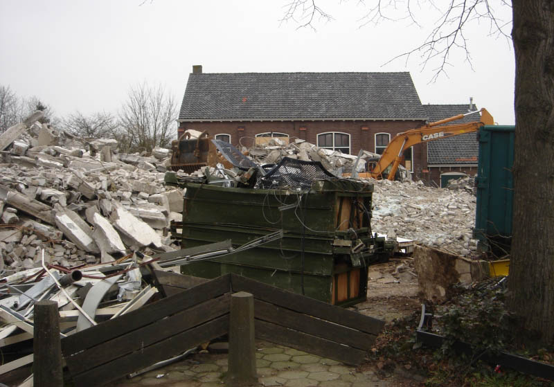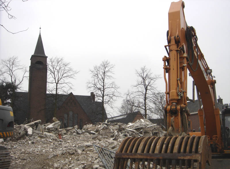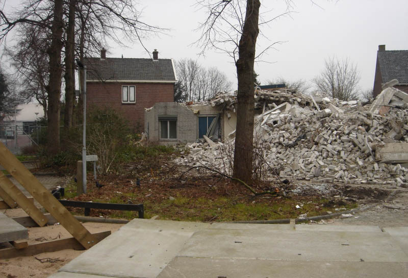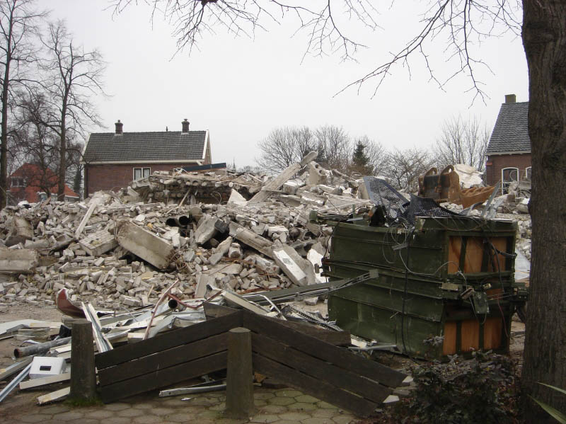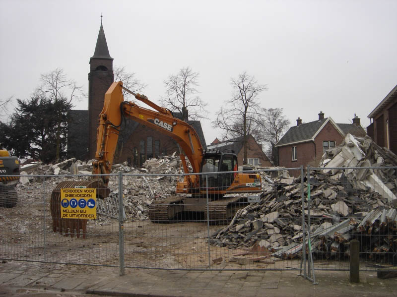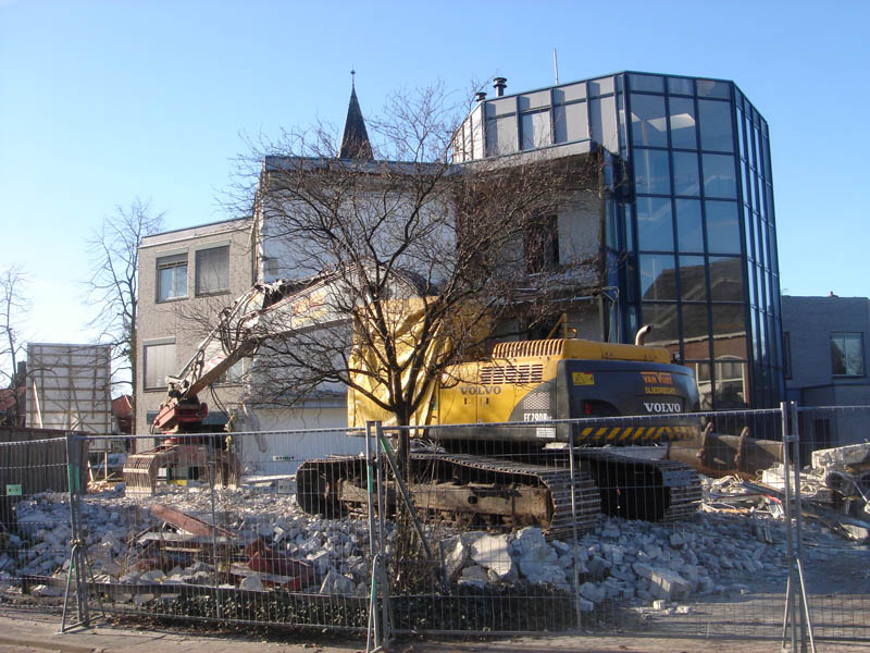 Hier wordt het gemeentekantoor De Zetsteen gesloopt om plaats te maken voor appartementengebouw De Oranjehof.
