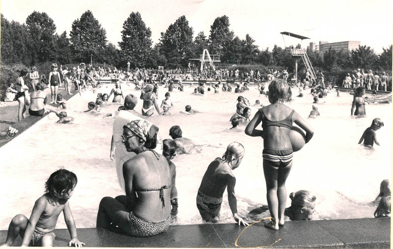 Grote drukte op een zomerse dag in buitenbad De Lockhorst