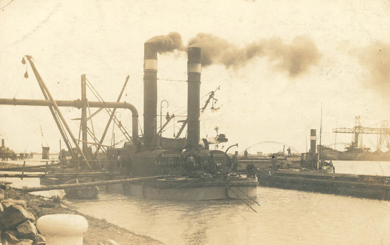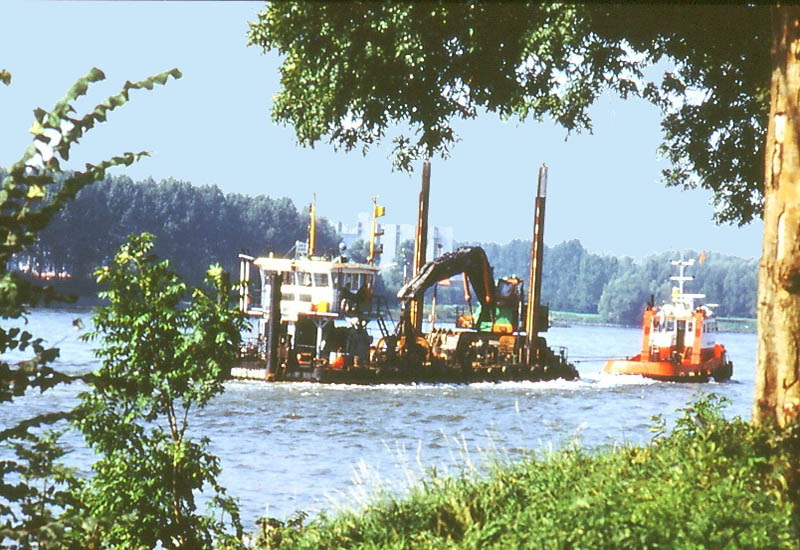 Sleepboot met zuiger op de Merwede