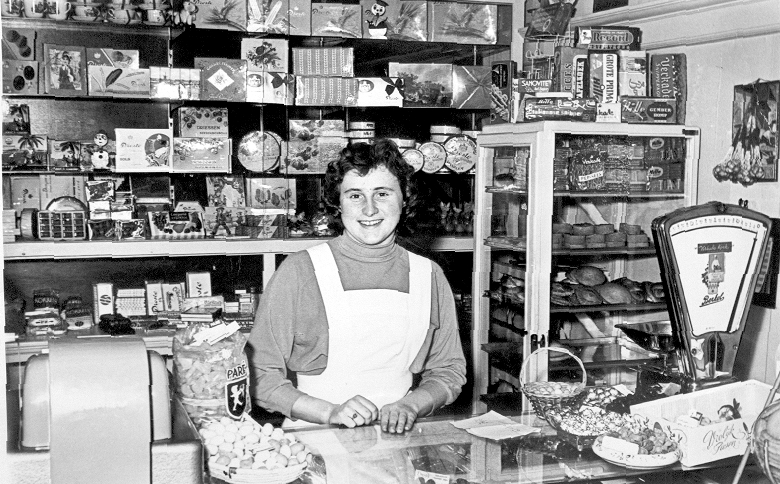 Sija van der Graaf achter de toonbank bij bakker Prins.