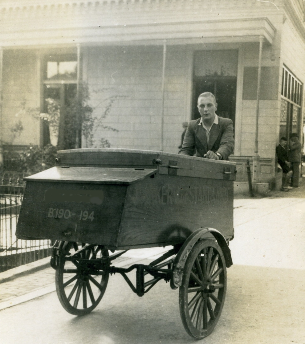 Bakker Hansum op de broodkar nabij de Oosterbrug