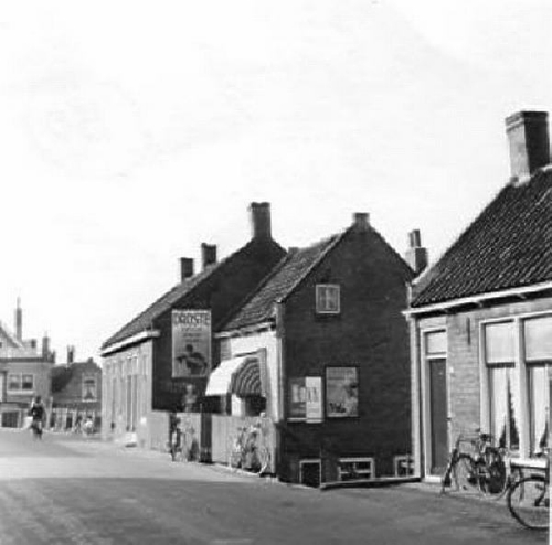 Winkel van kruidenier Jan van der Graaf nabij het Maranathagebouw. Nu sluit hiet de thorbeckelaan aan op de dijk.