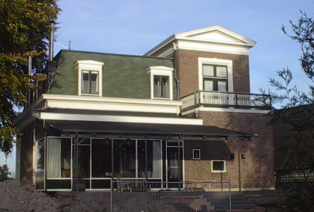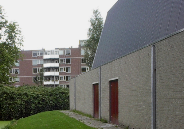 Achterzijde pand van Van Beuzekom in de Kerkbuiurt, gezien vanaf de Gantelweg.