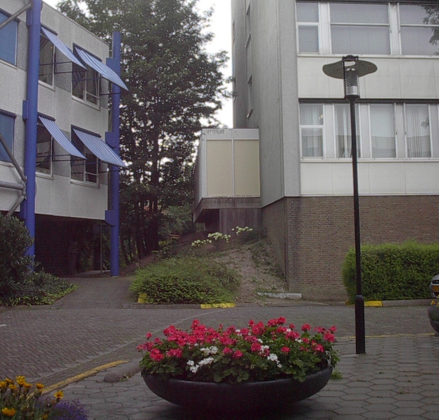 Bloembak tussen verpleeghuis Waerthove en het ziekenhuis.